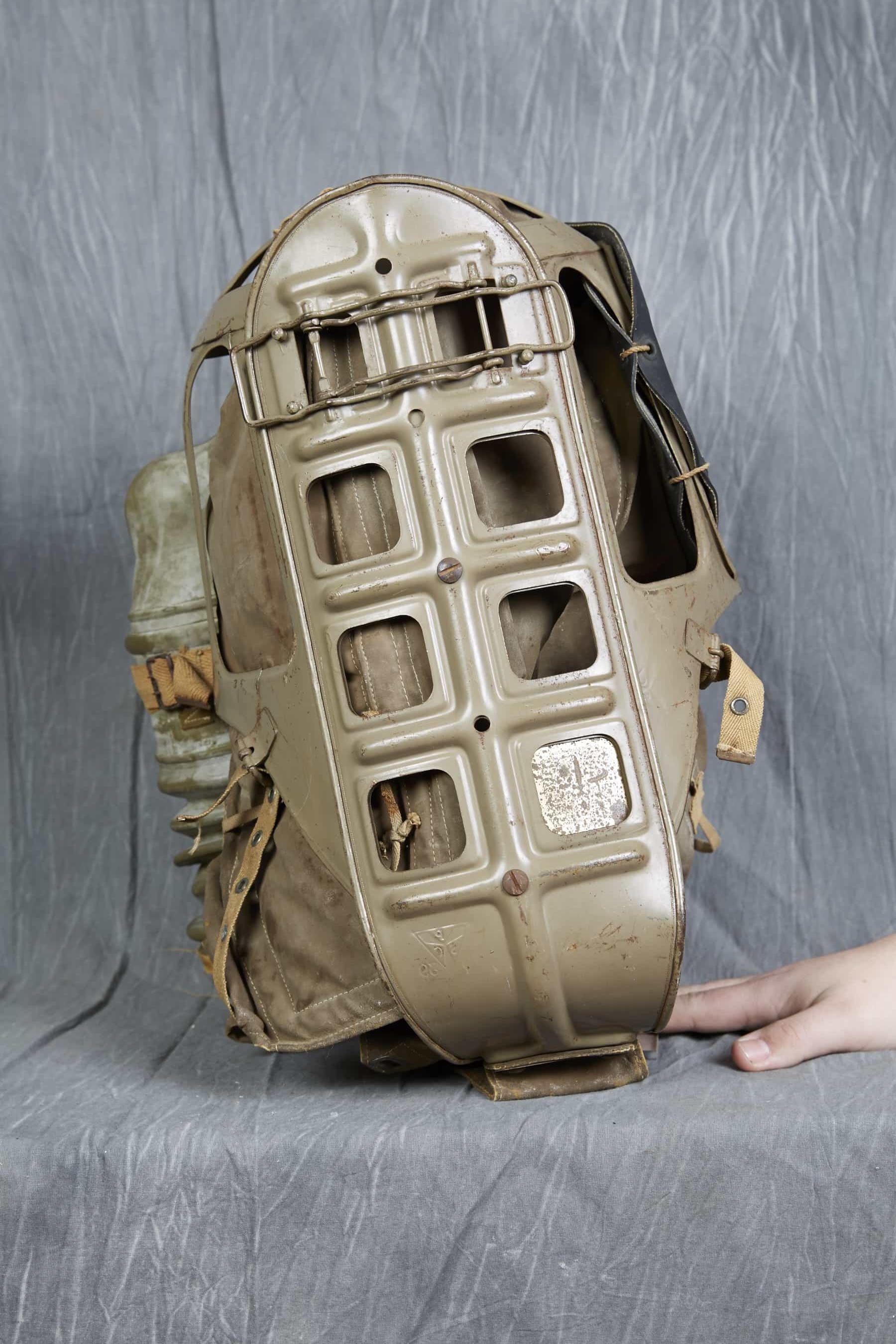 Baby's gas cradle; canvas, rubber and metal