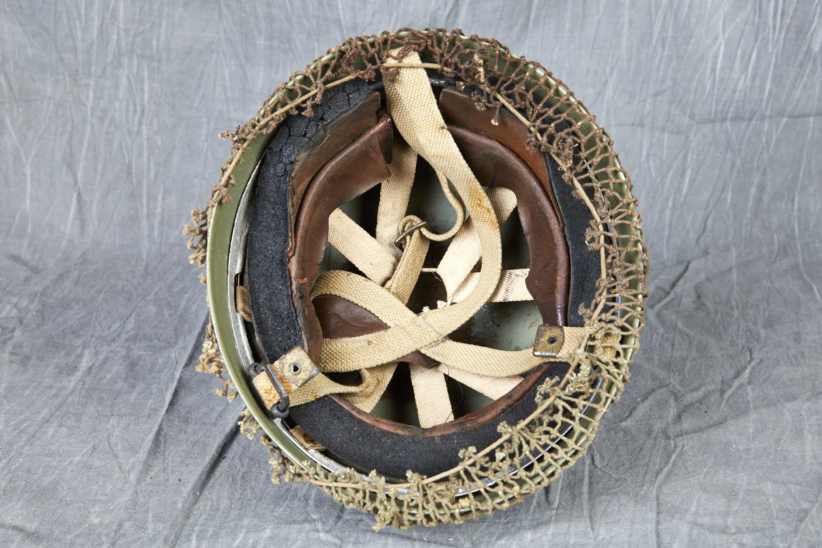 British steel helmet, Parachute Regiment, with liner with camo net.